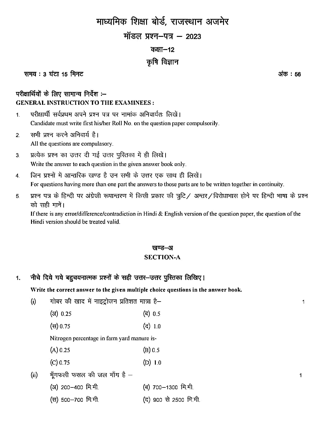12TH MODEL PAPER 2024